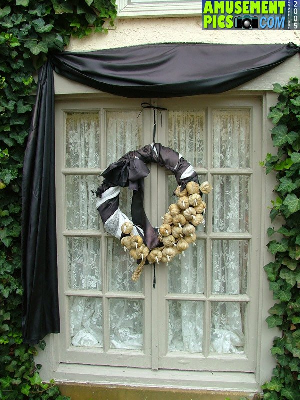 black wreaths and bunting