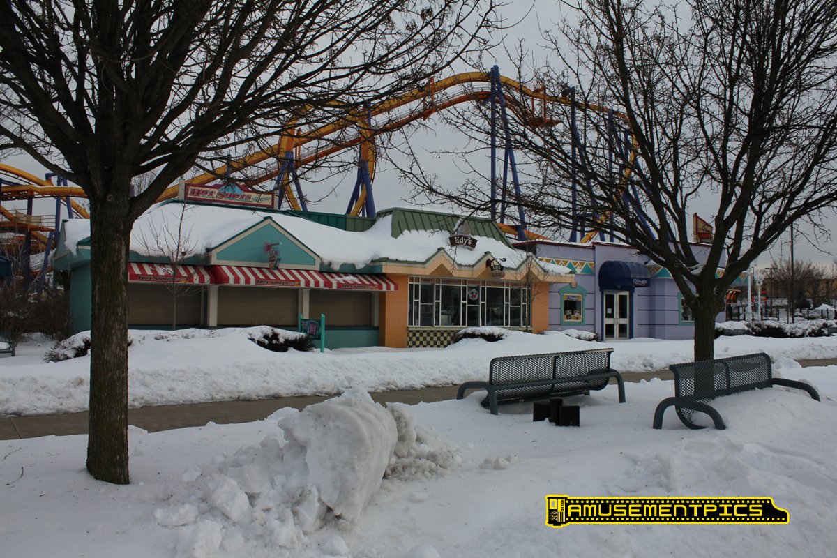 layer of snow and ice. Rides are mostly either covered or in
