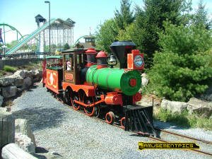 gauge loop around the park's river rapids ride. The train is also used