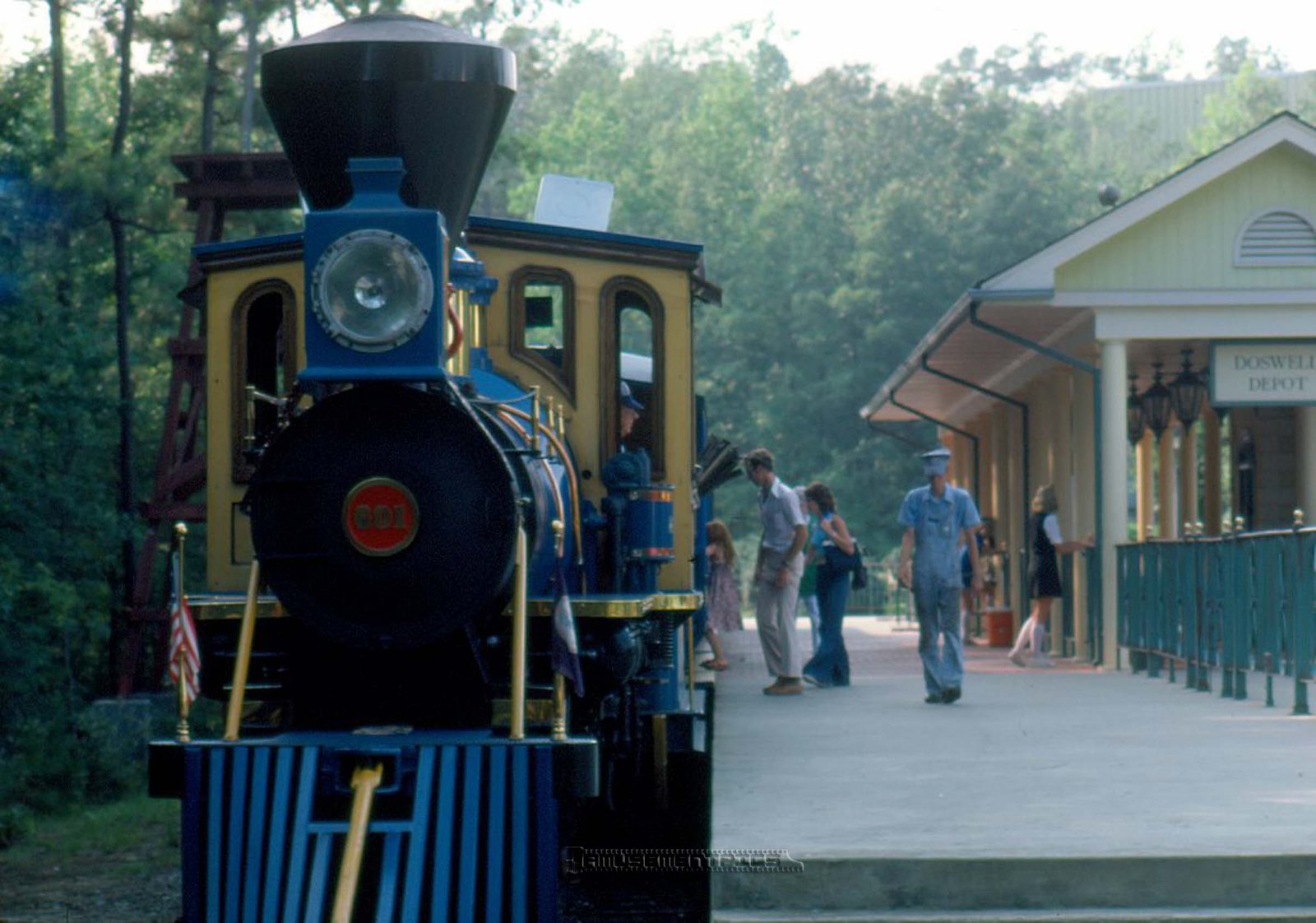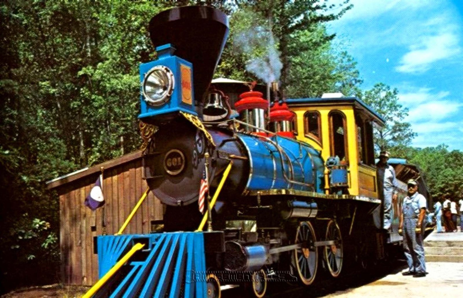 Engine #601 named the Patrick Henry was painted blue and featured a balloon stack. After almost twenty years at Kings Dominion it was sold to Busch Gardens Tampa where it operates today as part of the Trans Veldt Railway. | |||||||||||