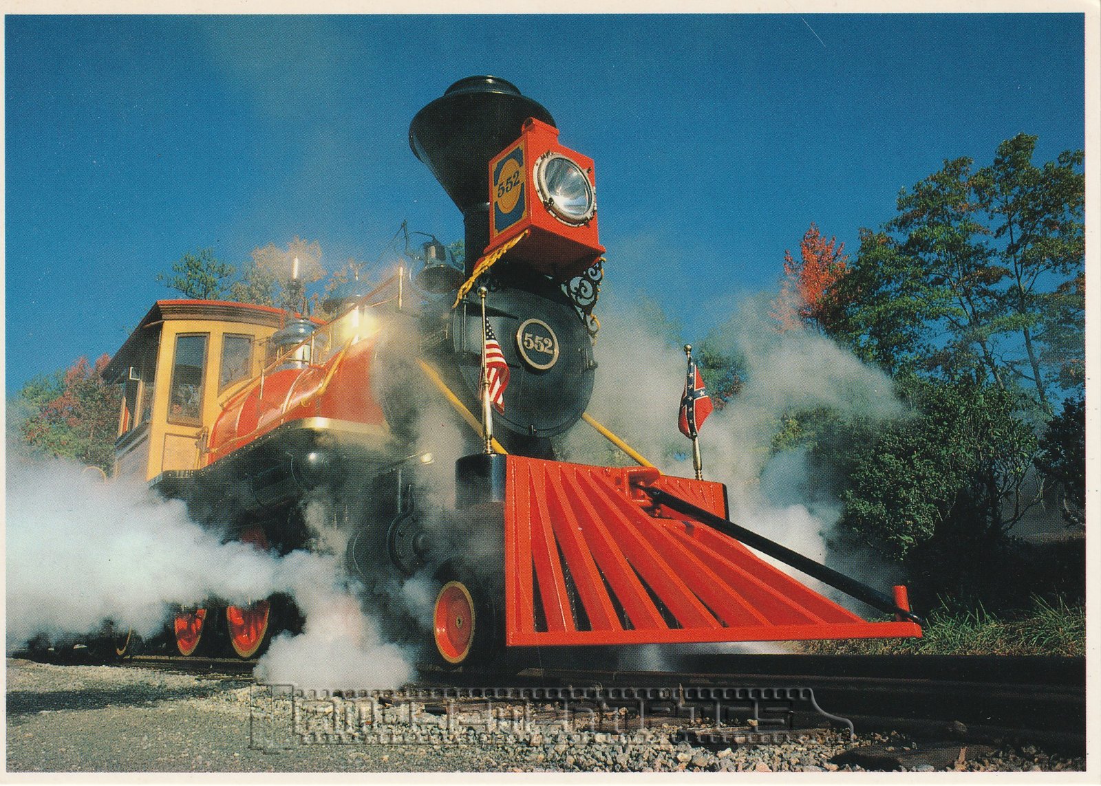 Engine #552 named the Stonewall Jackson was painted orange and featured a diamond stack. After almost twenty years at Kings Dominion it was sold to Camp Dry Gulch in Adair, Oklahoma. In 2020 it was destined to go to Worlds of Fun renamed "Levi" as a temporary replacement for their engine, #19 "Ely" while it's out for service. | |||||||||||
